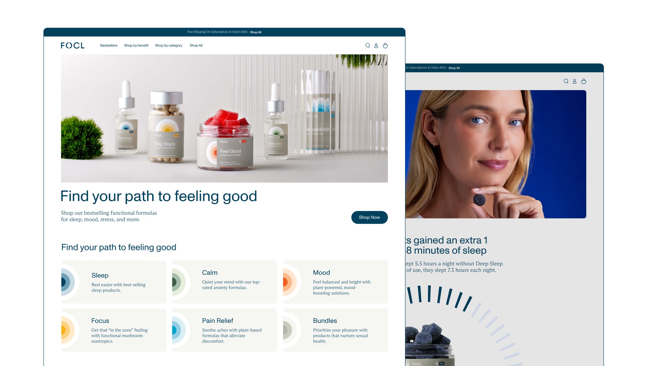 Together with the internal design team we helped bring FOCL’s rebrand to life. The goal was to translate FOCL into a clean and modern wellness brand that spoke more directly to the customer on how it was supporting their wellness journey.